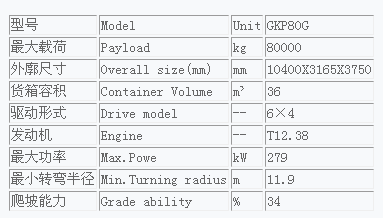 GKP80G是在GKP80D柴油動力基礎上新開發的LNG燃氣動力非公路自卸車, 適用于港口礦物轉場或道路平坦施工區域短途運輸作業。